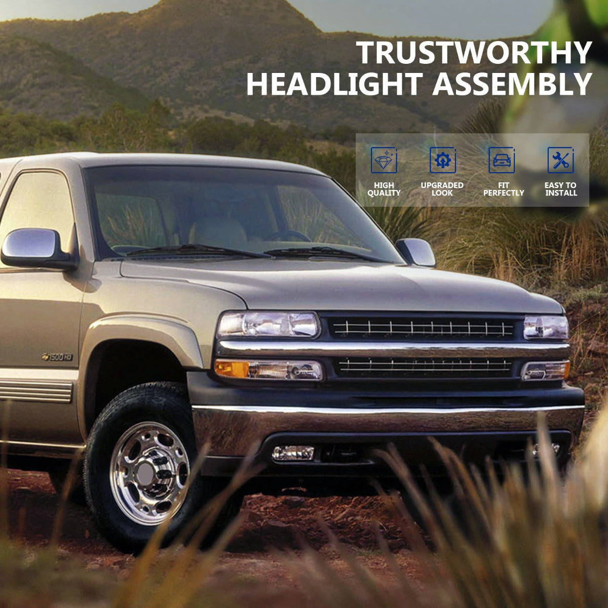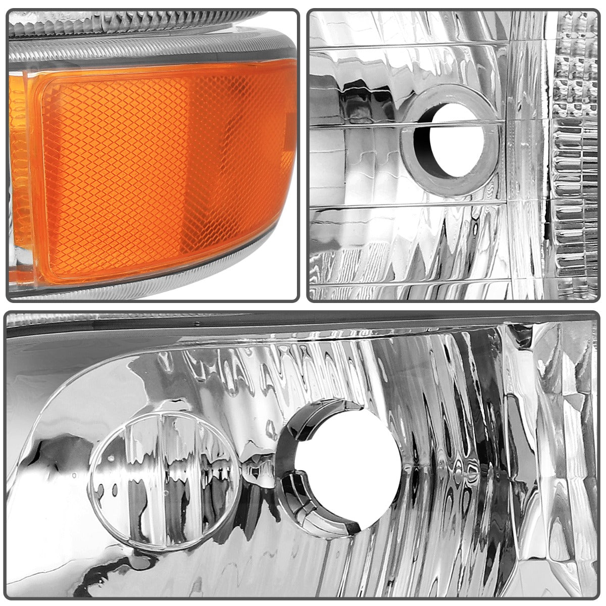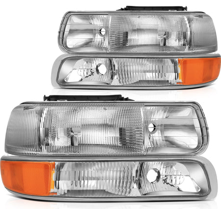 2000-2006 Chevy Tahoe/Suburban 1500 2500 Headlight Assembly Driver and Passenger Side Chrome Housing
