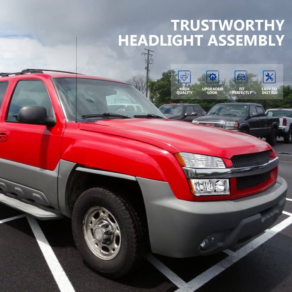 Increase quantity for 2002-2006 Chevrolet Avalanche 1500 2500 Headlights Assembly Driver and Passenger Side Chrome Housing
