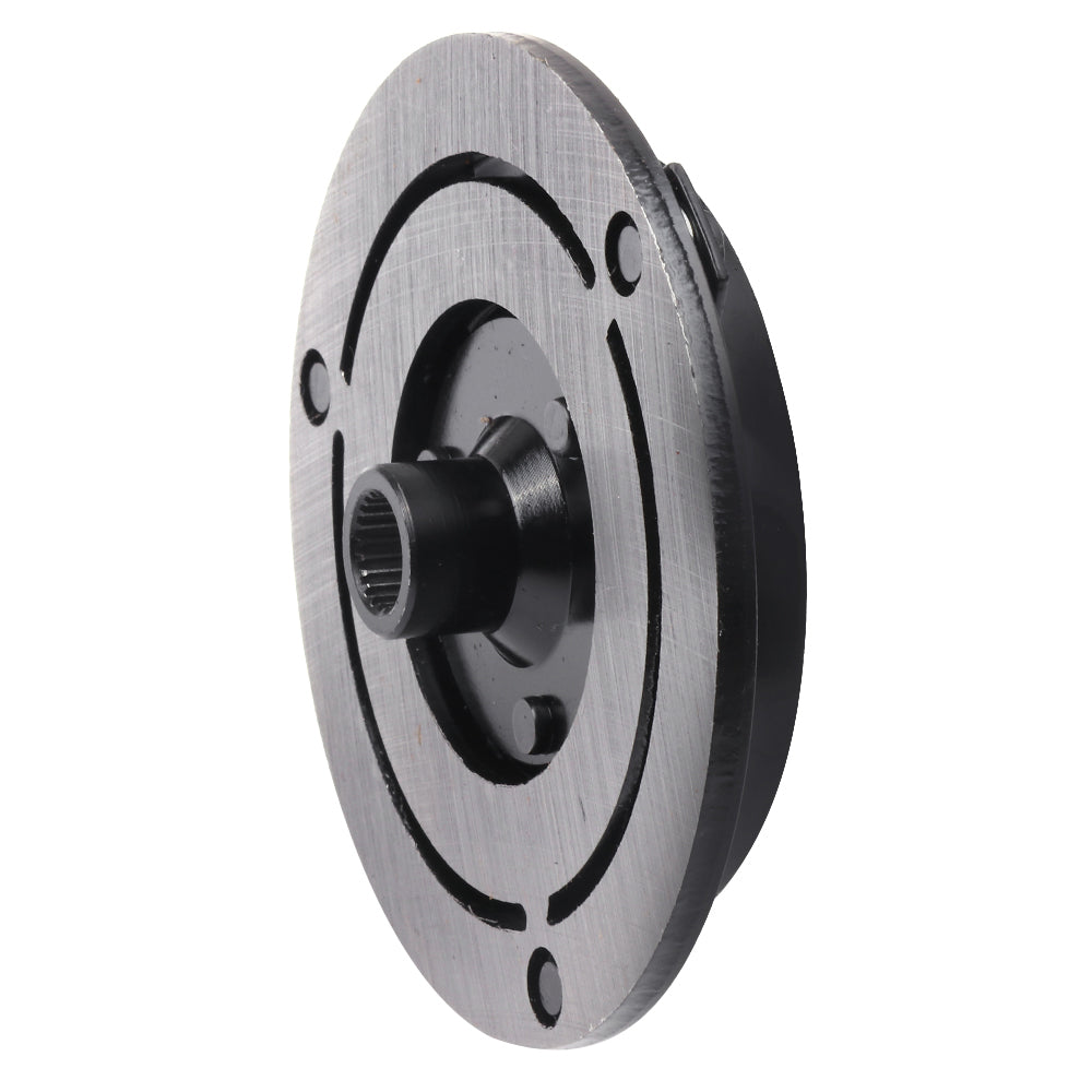 The clutch drive plate is splined to the input shaft of the compressor.