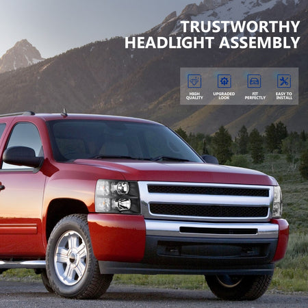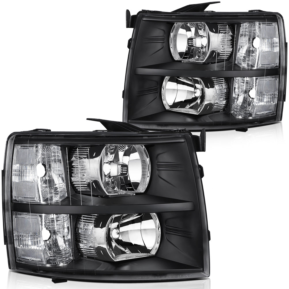 Decrease quantity for 2007 Chevy Silverado 1500 2500 3500 Black Housing Headlights Assembly Driver and Passenger Side
