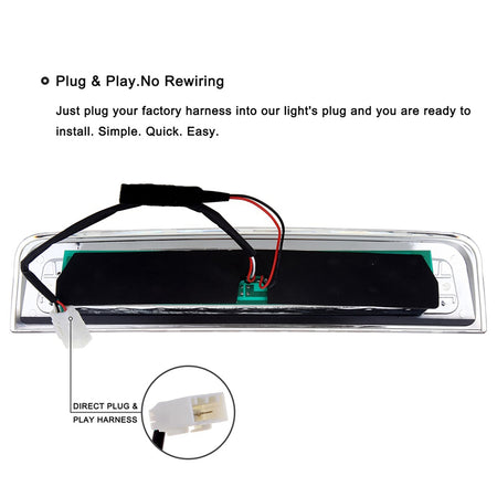 Our 3rd brake lights have Tech-Leading DIP LED which illuminate up to 10x faster than incandescent bulbs alerting trailing drivers sooner for added safety while bringing a new modern look to your vehicle with brighter, more efficient lighting.