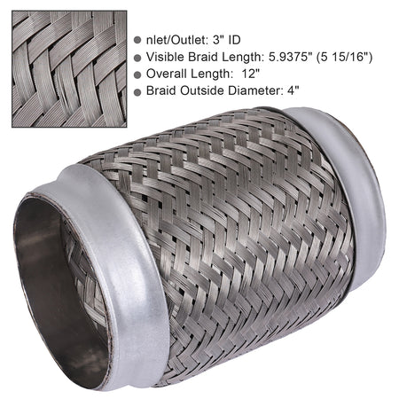 3.5 inch Inlet/ ID- Exhaust Flex Pipe Coupling Stainless Triple Ply 6 inch Long New