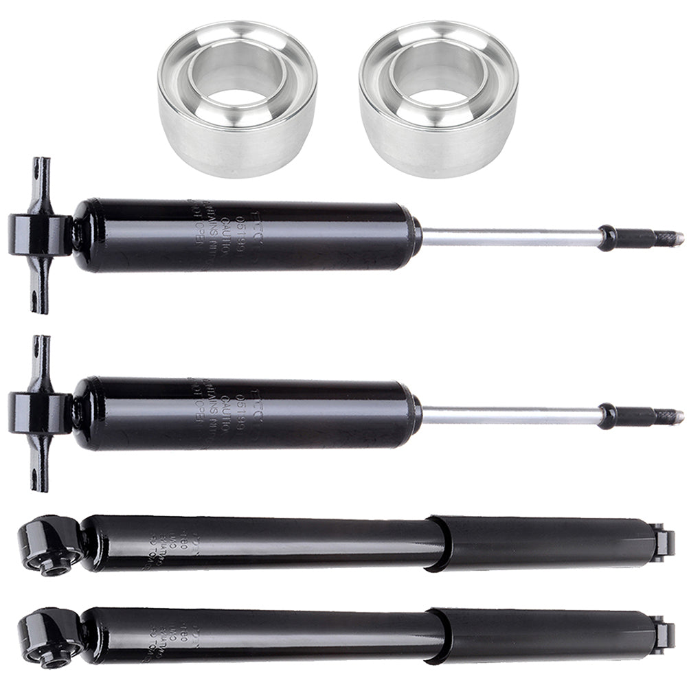 - Packing Included: 2x Front Spring Spacers & Full Set Shocks Struts