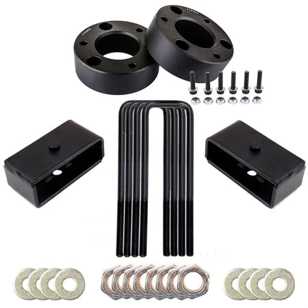 This lift kit will raise the front of your vehicle by a true 3" and raise the rear 1".