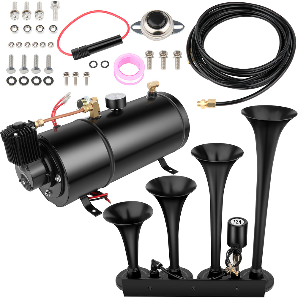 Increase quantity for 4 Trumpets Train Horn Kit For Truck Car Pickup Loud System Air Tank 150psi