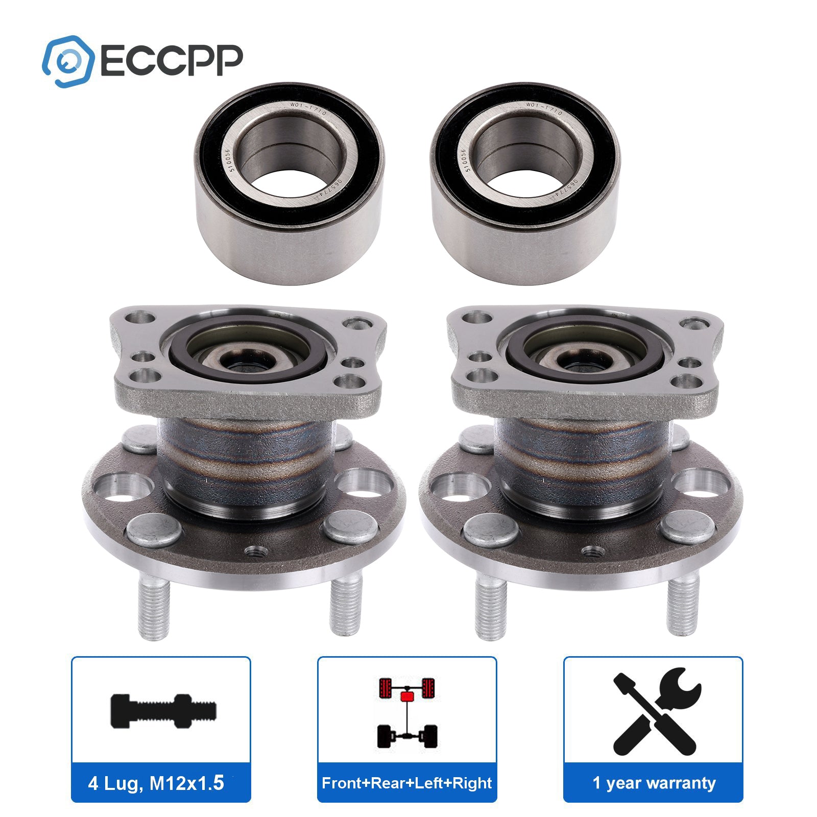 4Pcs Front + Rear Wheel Hub Bearing Assembly For Mazda 2 2011-2014 FWD