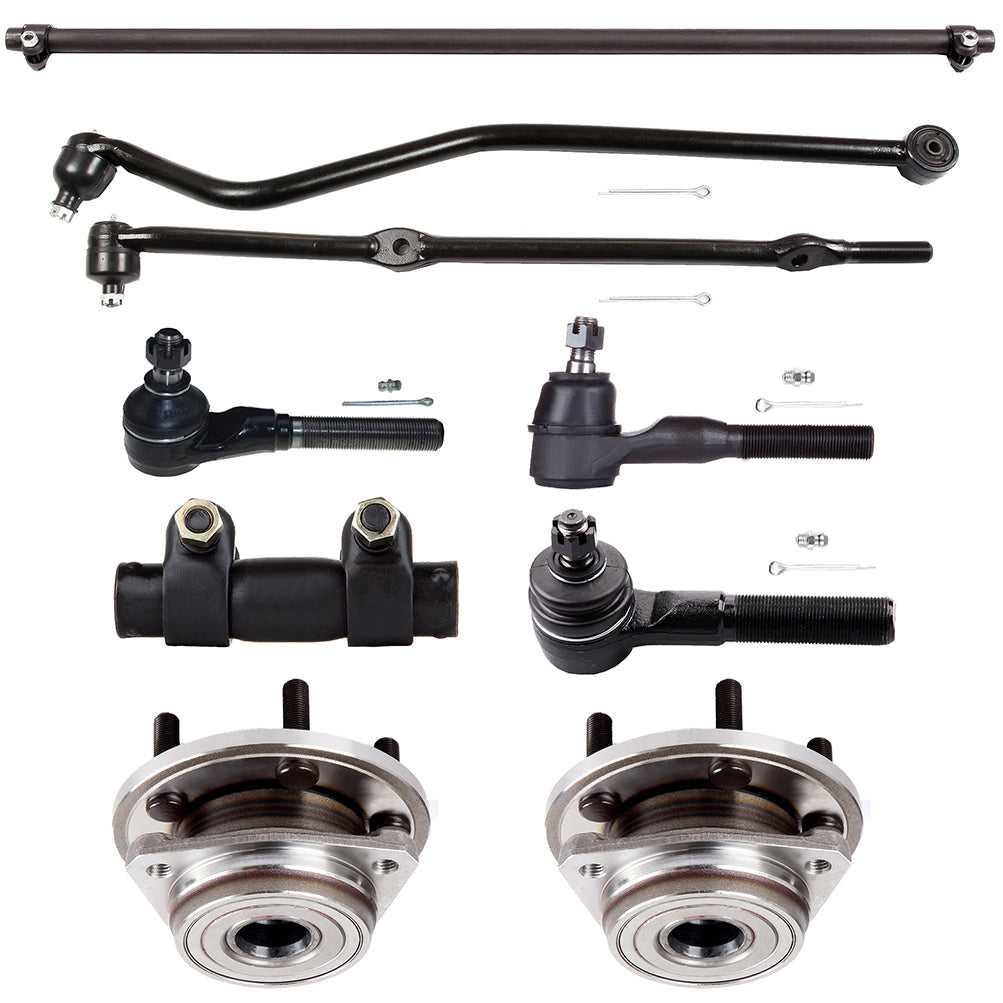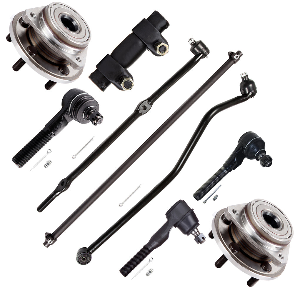 9x Front Steering Tie Rod Ends Wheel Hub Bearings For 2000-2006 Jeep TJ Wrangler