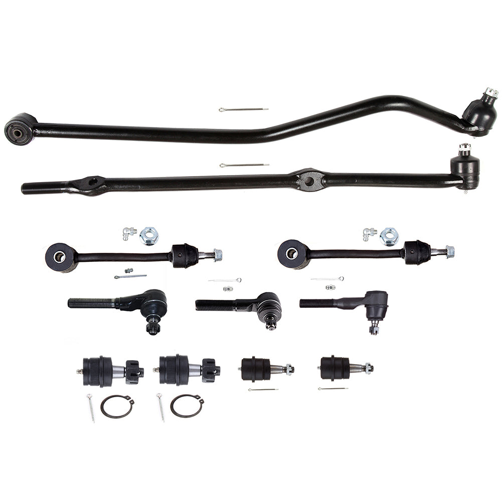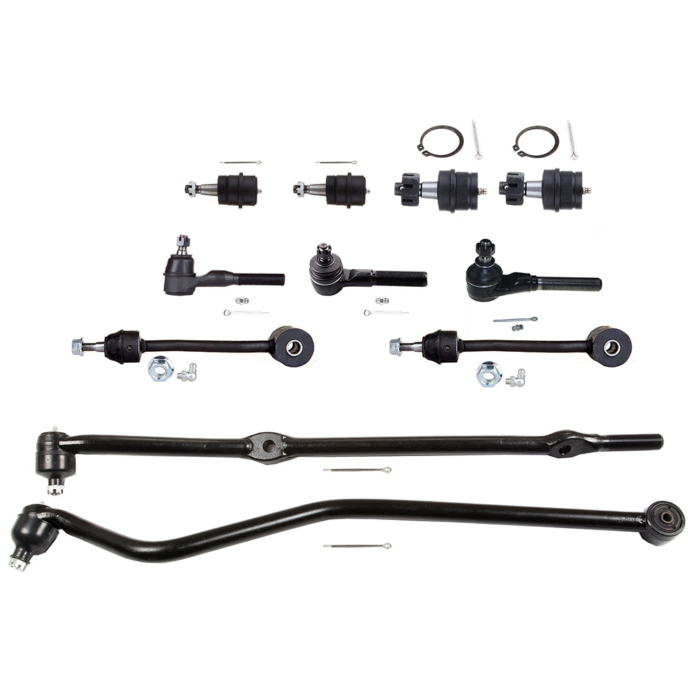 1.Specifications:(1)ES3096L Front Inner Steering Tie Rod End, (2)K3161T Front Lower Ball Joint, (1)ES3094L Front Outer Tie Rod End - Driver Side - 4.0L, (1)ES3095R Front Outer Tie Rod End At Passenger Side Connecting Tie Rod - 4.0L, (2)K3197 Front Sway Bar End Link, (1)DS1235 Front Track Bar, (2)K3134T Front Upper Ball Joint, (1)DS1430 Outer Connecting Tie Rod End - Passenger Side