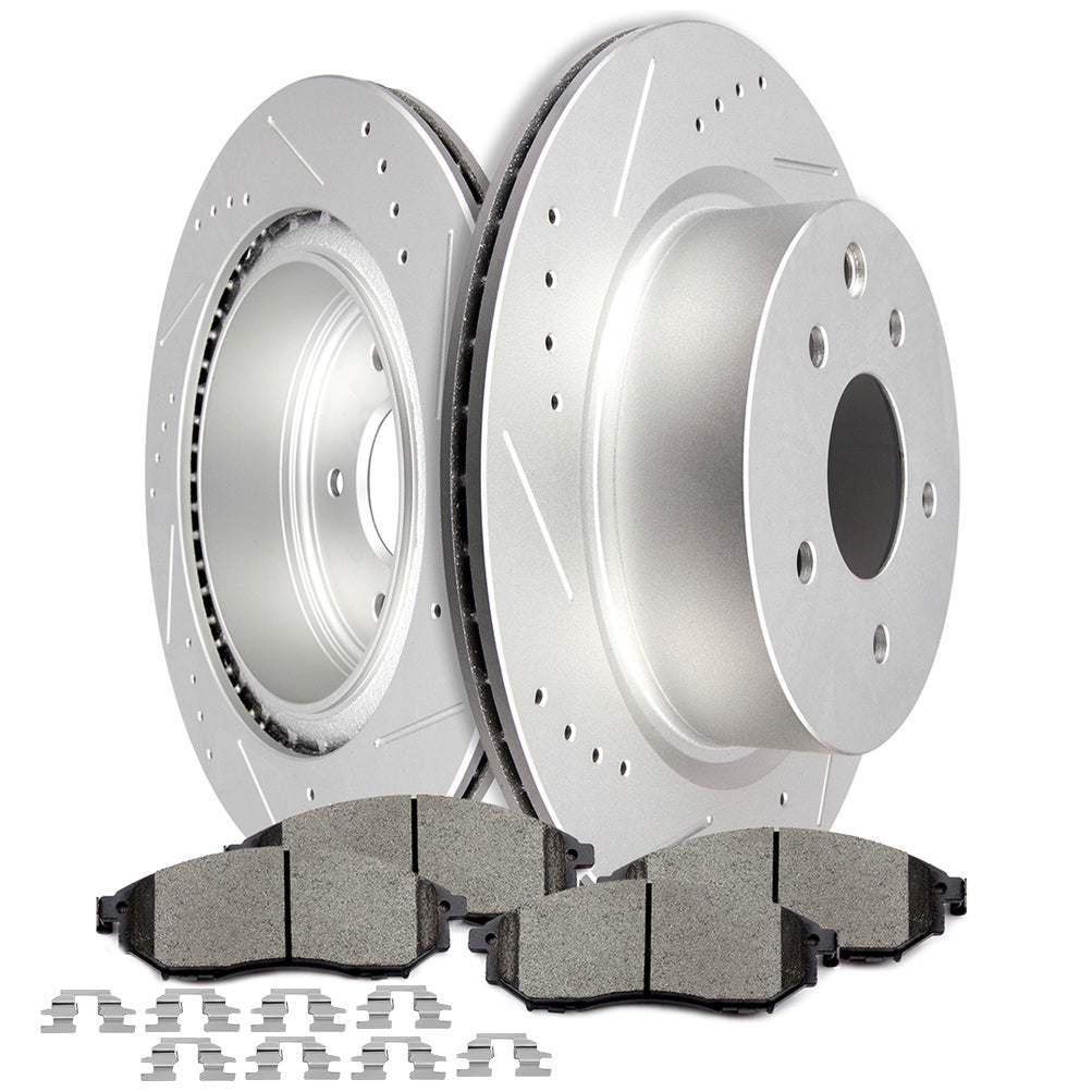 2 Pcs Rear Brake Disc(s)/Rotor(s)+2 Pcs Rear Brake Pads+1 PC Hardware Included