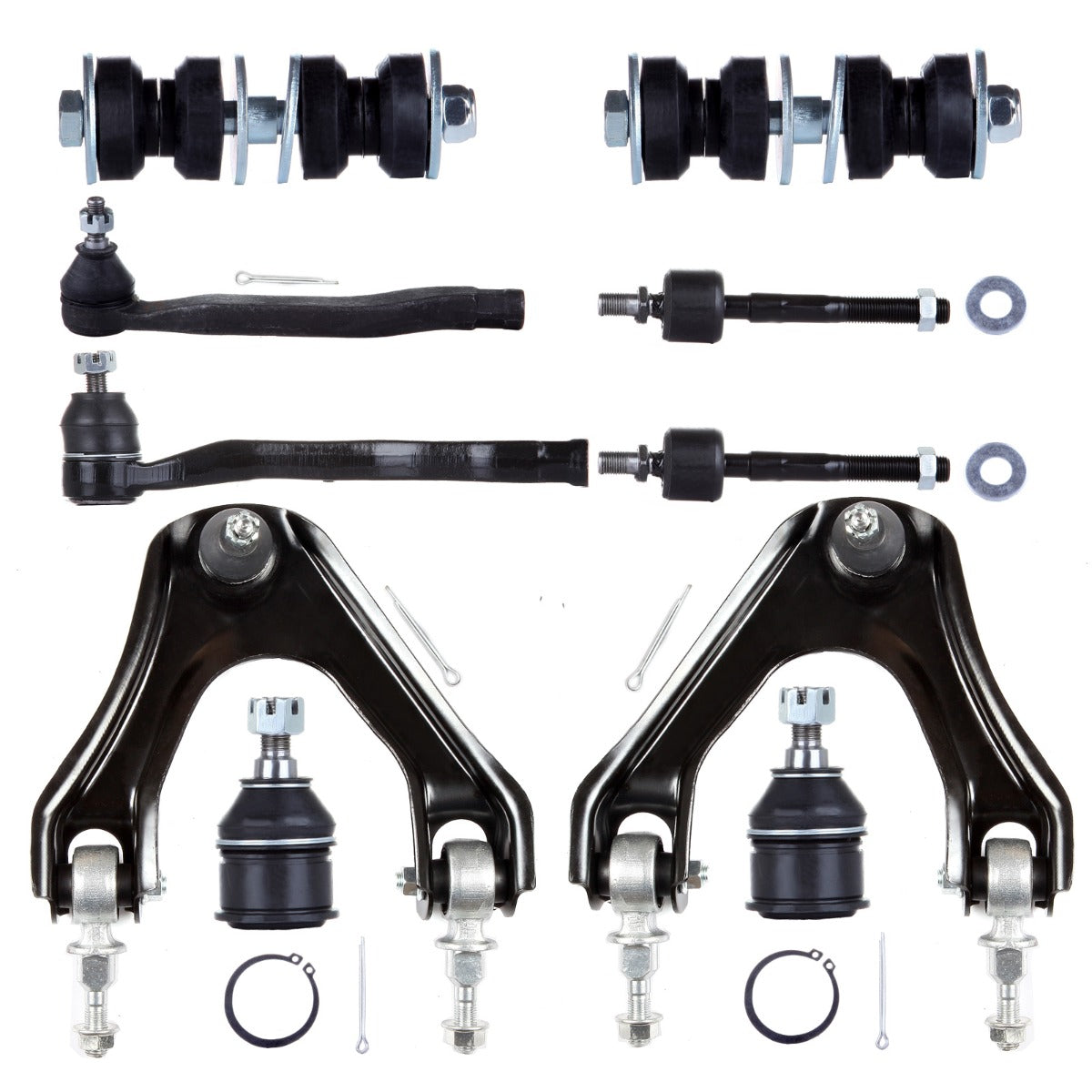 1.Specifications:(2)EV342 Front Inner Tie Rod End,(2)K9643 Front Lower Ball Joint,(1)ES3392R Front Outer Tie Rod End - Driver Side,(1)ES3391R Front Outer Tie Rod End - Passenger Side,(2)K90122 Front Sway Bar End Link,(1)K90447 Front Upper Control Arm And Ball Joint - Driver Side,(1)K90446 Front Upper Right Control Arm And Ball Joint