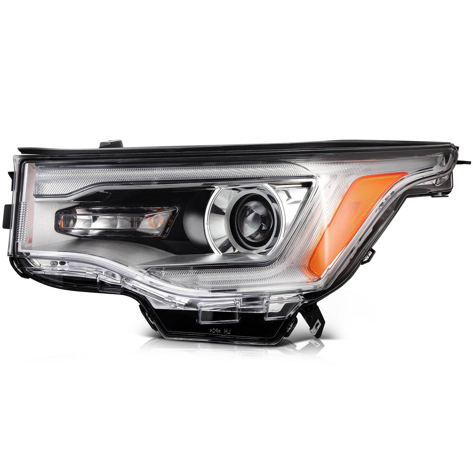 Projector Headlight Working Principle: Light bulb is placed in a curved reflector called projector bowl, This reflector focuses light onto condenser lens, and emits it in a controlled and precise manner.