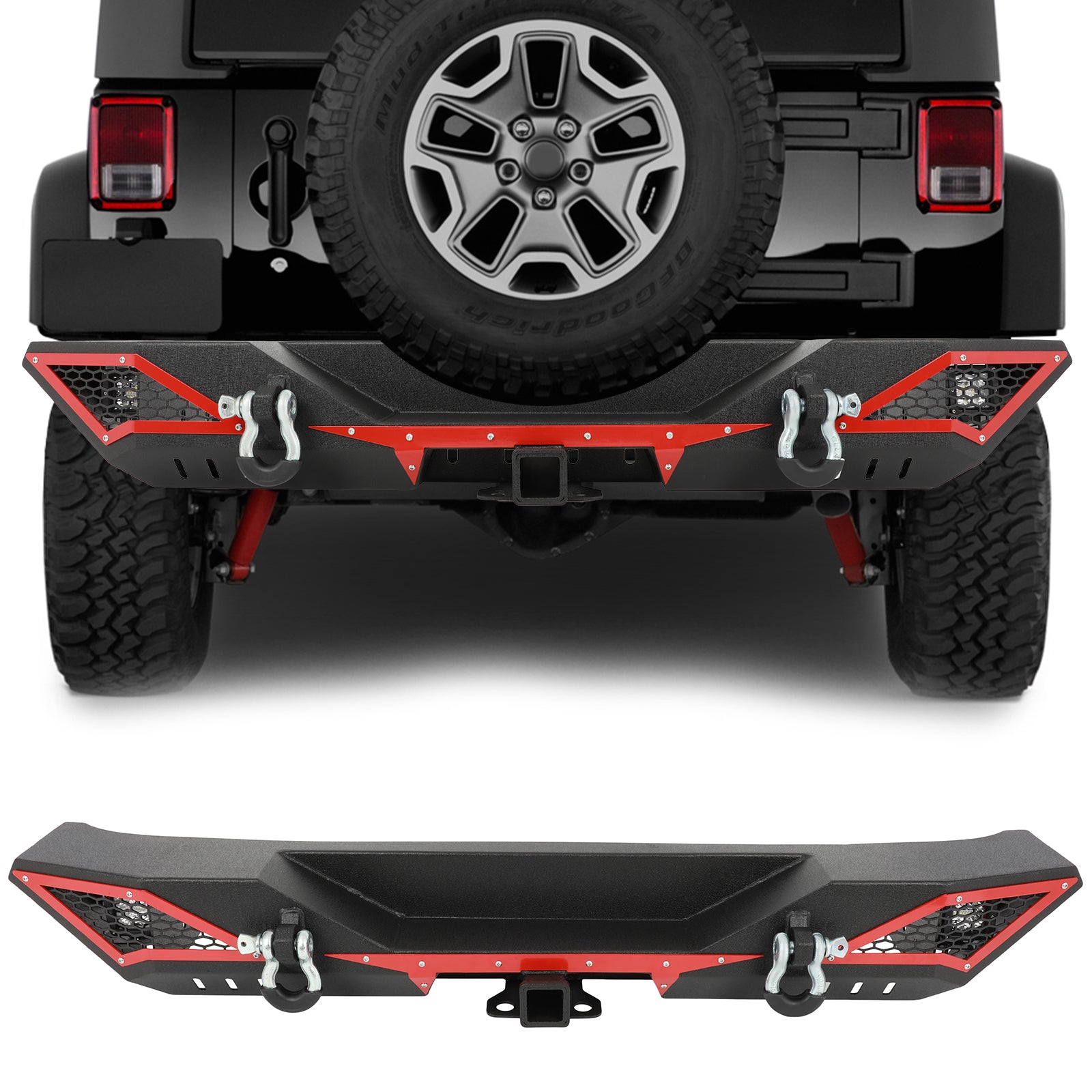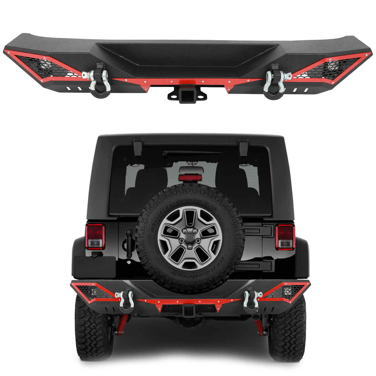 Bundle Description: Rear bumper with led lights,4.75T D-rings,mounting hardwares.