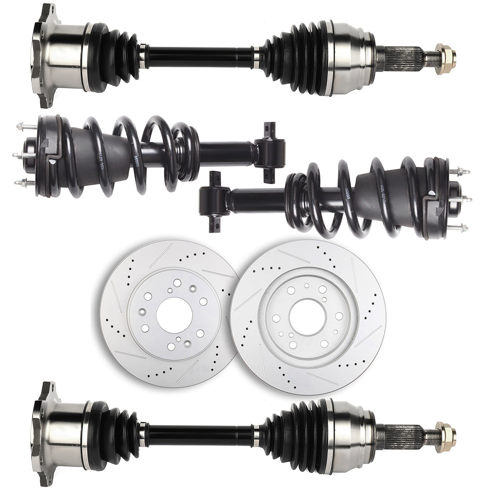 Front CV Axle+Brake Rotors+Complete Struts for Chevrolet Avalanche LTZ 2008-2012