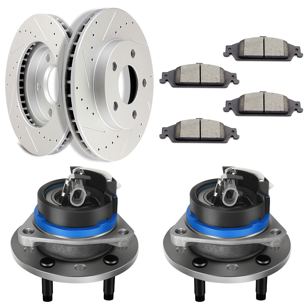 - Qty: 2 Brake Discs + 2 Hub Bearings+4 Brake Pads