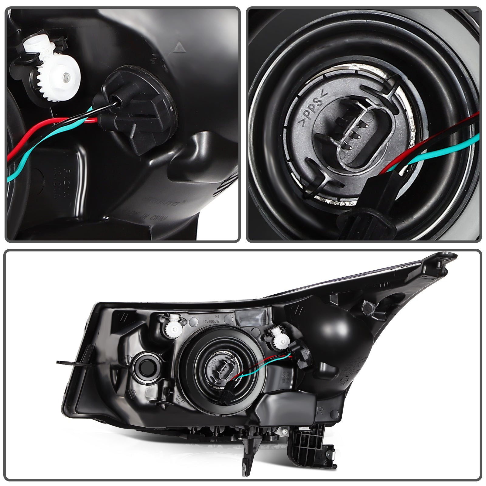 Headlights For 2011-2015 Chevy Cruze 4-Door Sedan 1.6L Black Housing Pair