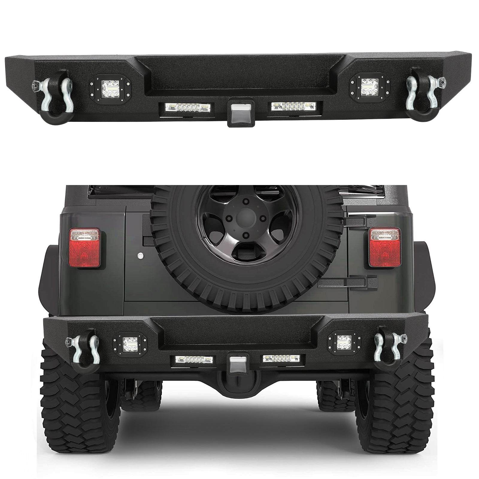 Offroad Black Rear Step Bumper Assembly w/ Led Lights for 1997-2006 Wrangler TJ