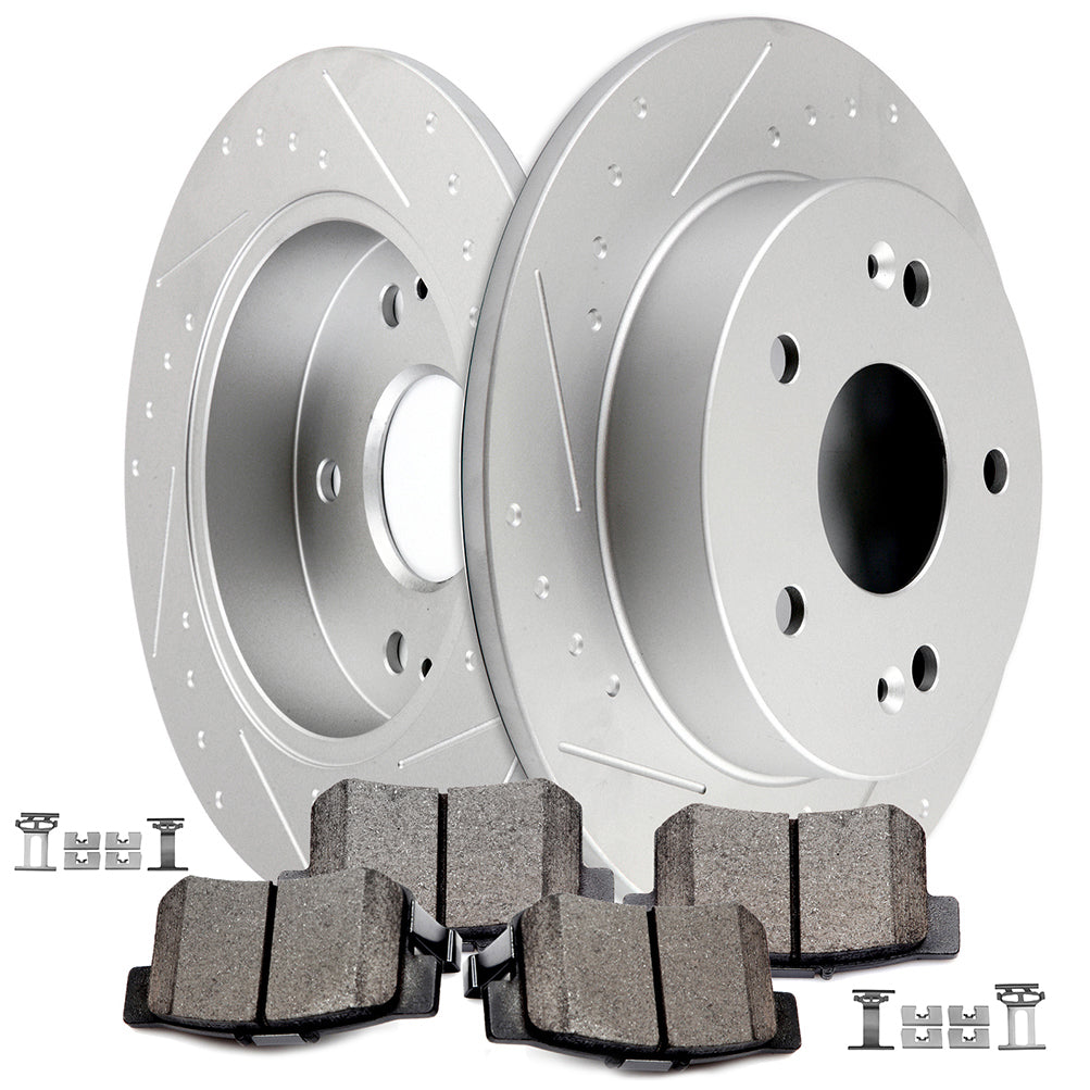2 Pcs Rear Brake Disc(s)/Rotor(s)+2 Pcs Rear Brake Pads+1 PC Hardware Included