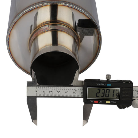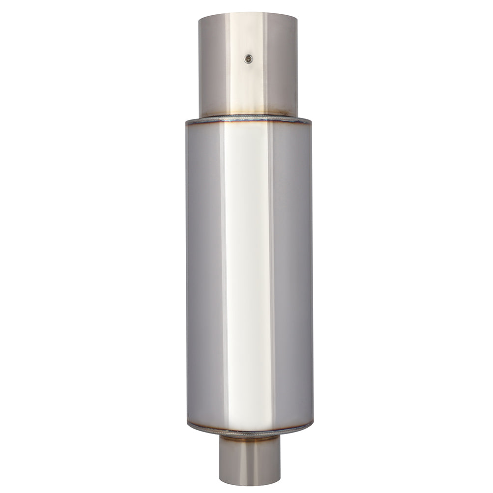 - Free flow muffler, straight through perforated stainless steel core wrapped with stainless steel mesh